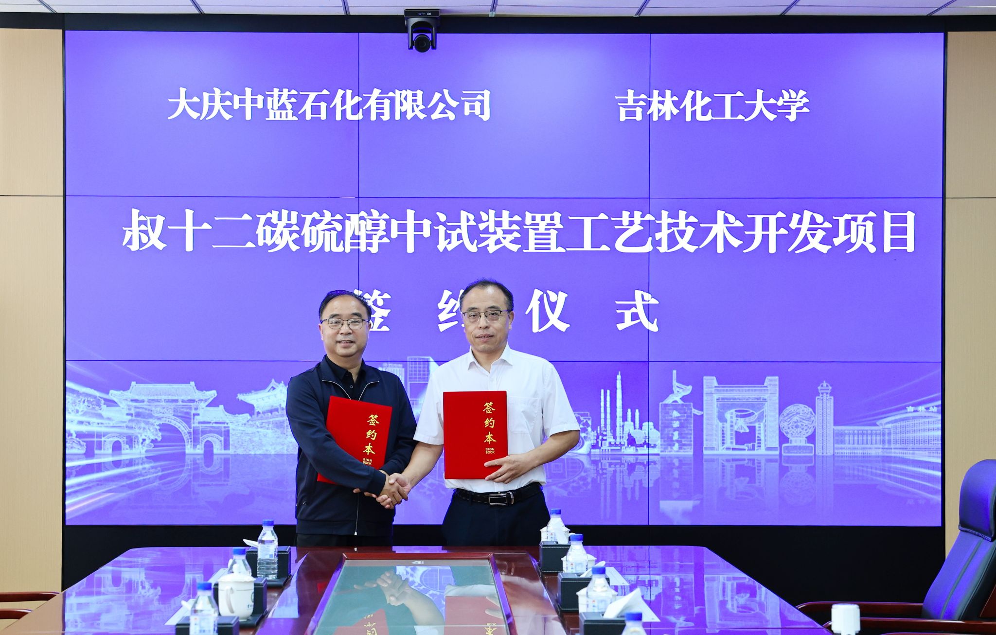 9月12日,大庆中蓝石化有限公司与吉林化工大学正式签订了“大庆中蓝石化有限公司新建叔十二碳硫醇中试装置工艺技术开发项目”合作协议。大庆中蓝石化有限公司总经理刘风云与吉林化工大学校长艾学忠代表双方签署了协议。该项目是在吉林化工大学张吉波、刘治刚等教授的带领下,在原有小试创新技术基础上,进一步开发叔十二碳硫醇连续成套工艺技术。