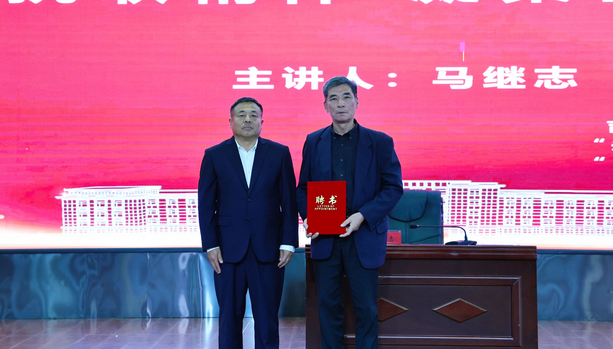 学校聘任马继志为思政导师,蔡立峰为其颁发聘书。