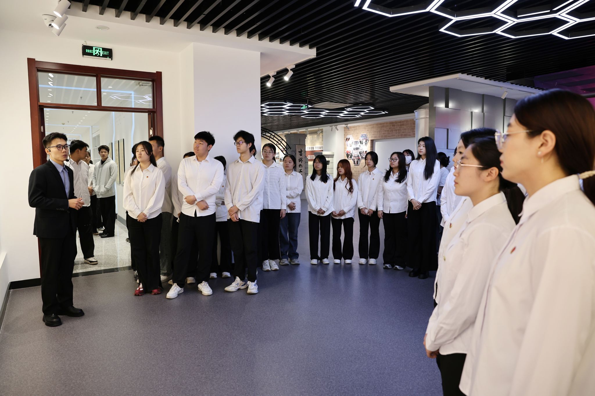 仪式结束后,全体学员集体参观了校史馆。在讲解员的引导下,学员们认真观看珍贵实物和历史图片,深入了解学校发展历程,从优良传统中汲取奋进力量,进一步增强了爱校荣校情怀和使命担当意识。