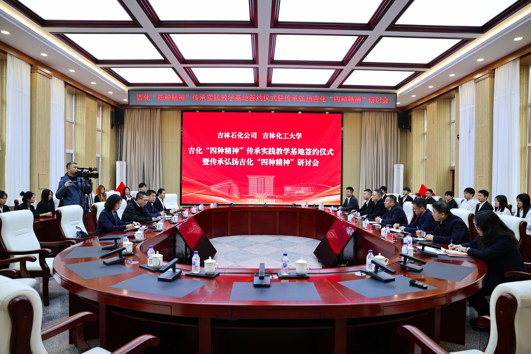 11月26日,吉林化工大学与中国石油吉林石化公司共同举办吉化“四种精神”传承实践教学基地签约仪式暨传承弘扬吉化“四种精神”研讨会。学校校长艾学忠会见了吉林石化公司党委委员、副总经理李秀强一行,双方围绕吉化 “四种精神”的传承路径及校企协同育人、产教深度融合等方面展开深入交流,凝聚广泛共识。