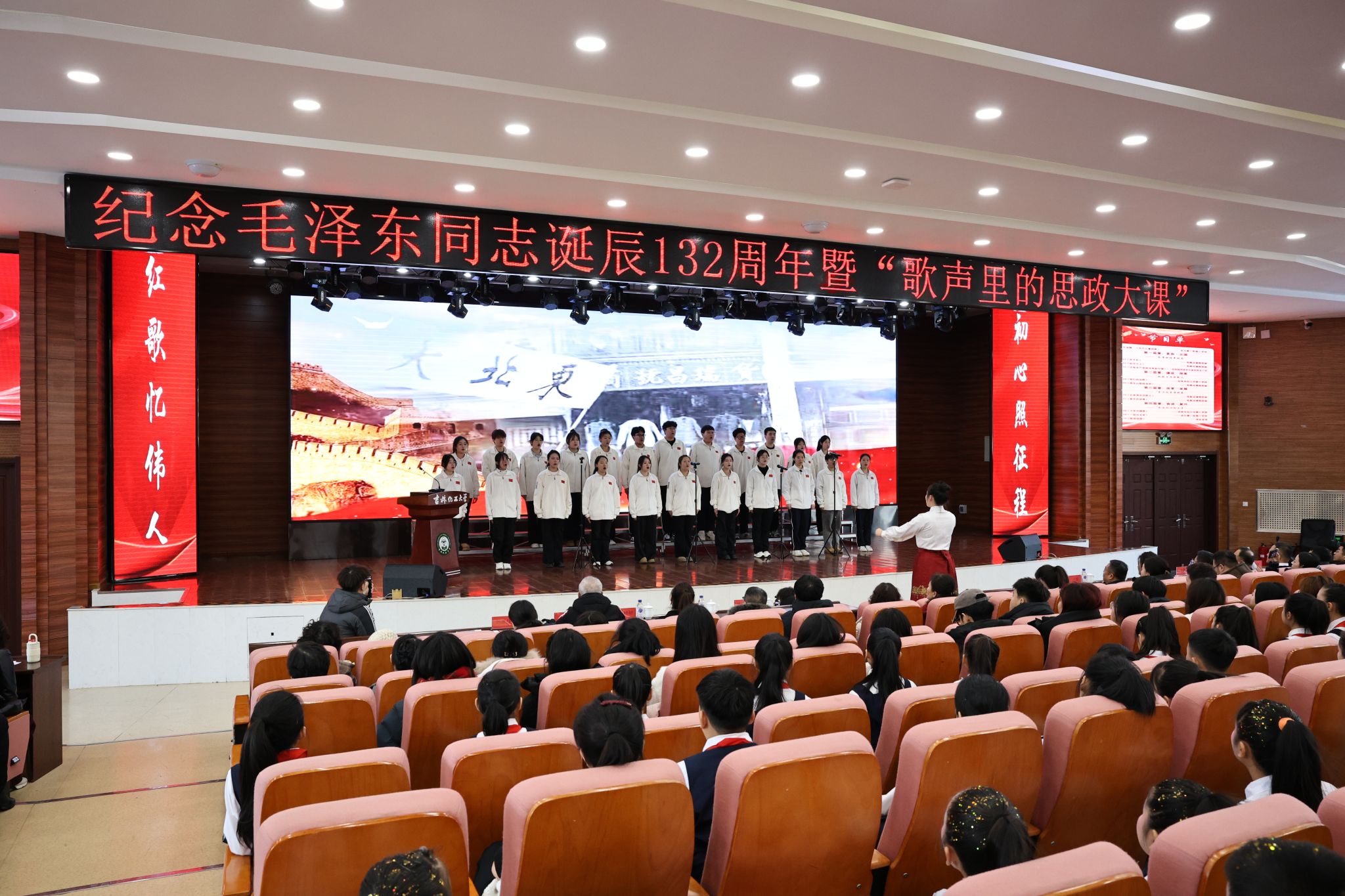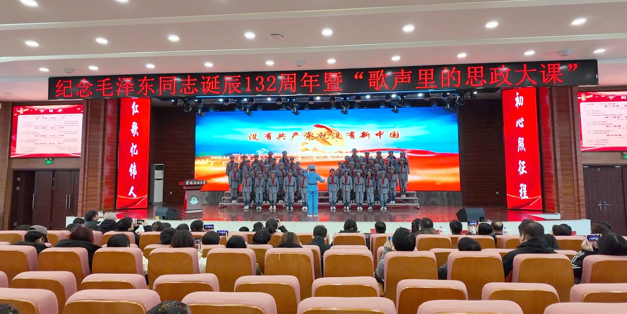 从教室到舞台,以歌声传初心。12月24日,为纪念毛泽东同志诞辰132周年,吉林化工大学联合吉化第一实验小学、吉林市松江东路小学、吉林经济技术开发区双吉小学同上一堂“旋律中的党史・信仰里的歌声:毛泽东与中华民族的伟大复兴”主题思政大课,以歌为媒重温红色历史,将对伟人的崇敬、对党的热爱,从情感认同内化为价值追求,外化为青春担当,生动践行大中小学思政课一体化建设要求。学校党委副书记蔡立峰出席活动。