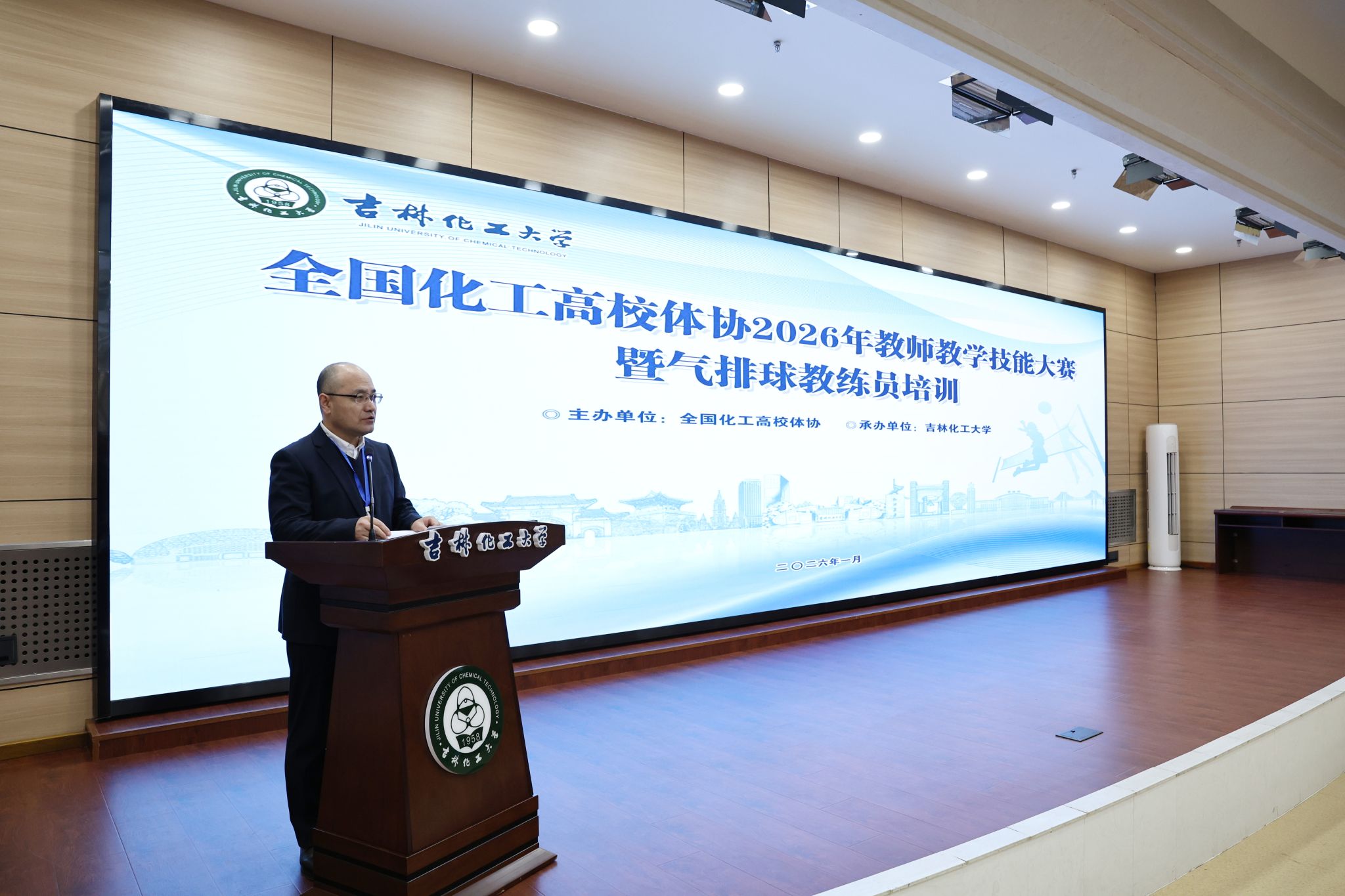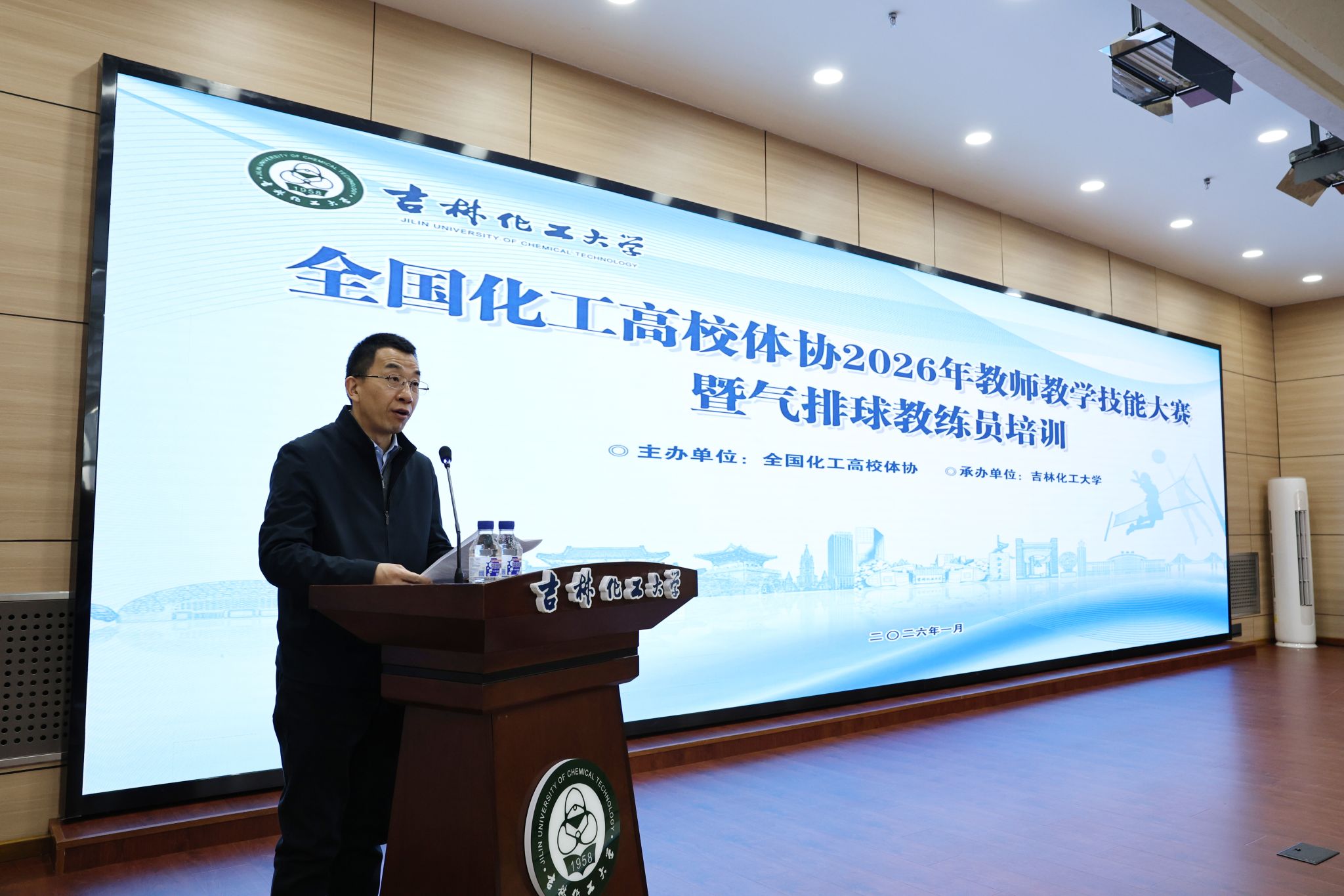 1月15日至17日,2026年全国化工高校教师教学技能大赛暨气排球教练员培训在吉林化工大学举办。中国化工教育协会教材建设工作委员会主任委员、化学工业出版社总编辑张兴辉教授,全国化工高校体育协会理事长、原郑州大学体育学院院长崔东霞教授等业内专家,以及来自全国多所化工类高校的教师代表齐聚北国江城,围绕体育专业发展与教学技能提升展开深入交流与研讨。学校党委常委、副校长王立国出席活动。