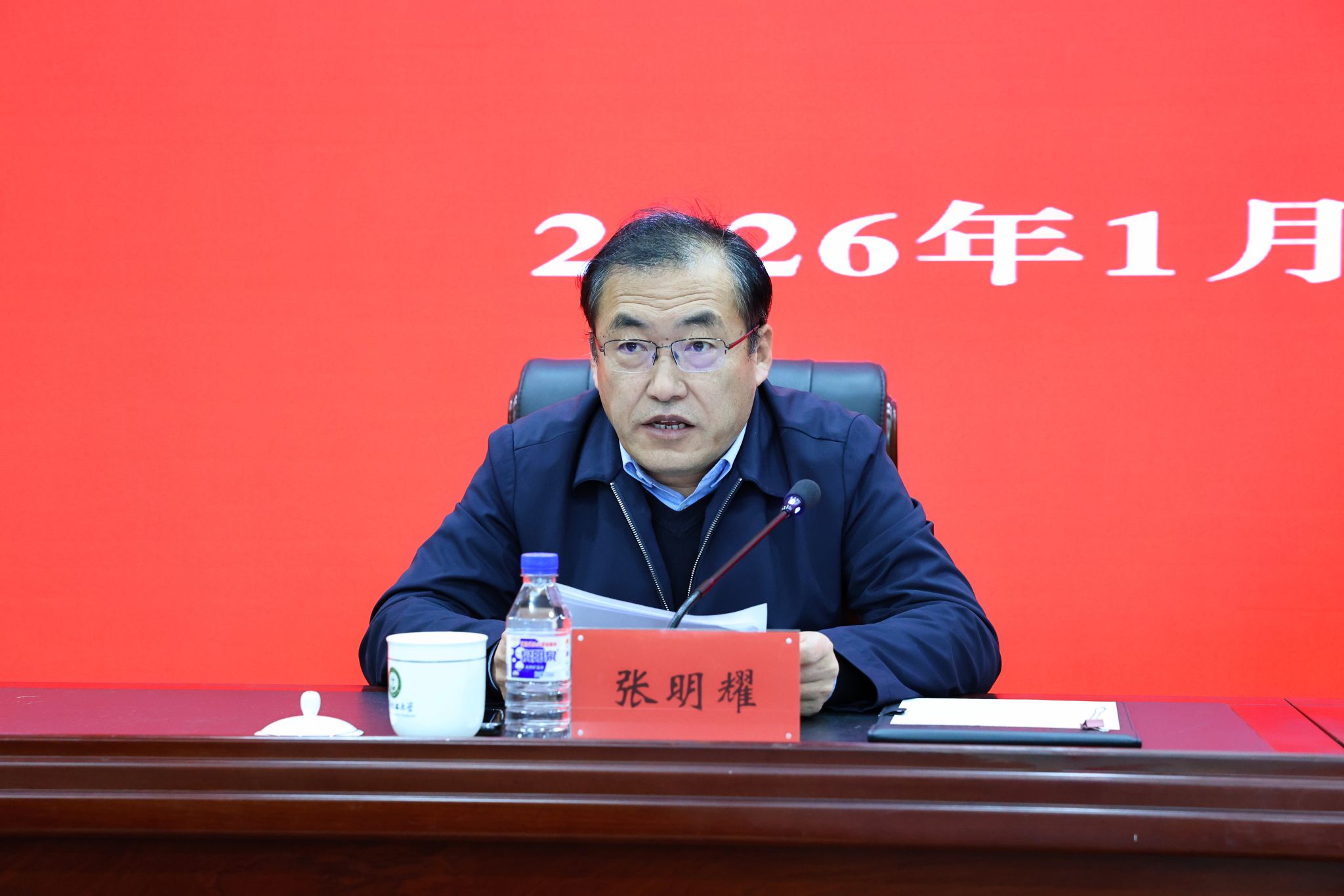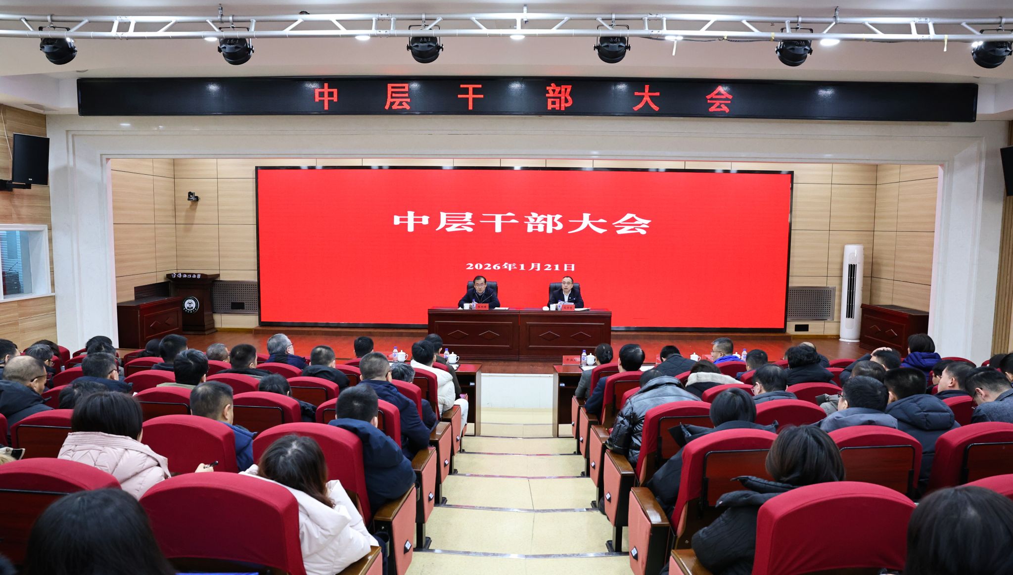 1月21日,学校在图书馆报告厅召开中层干部大会,总结2025年工作,部署2026年重点任务,安排寒假期间各项工作。党委书记张明耀主持会议并讲话,校长艾学忠出席会议并作工作部署。